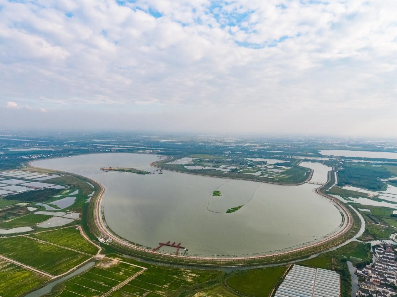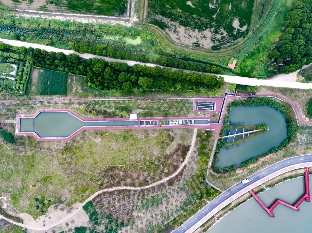 2. 金泽水库采用多重系统性生态措施,构建了“水、藻、草”多层级多过程耦合的生态系统。根据太浦河来水水质特征,开展生态水源湖(库)原水水质改善的关键技术原位试验研究,建成了一个占地16亩、日处理10万m³的中试基地,创新利用接触氧化原理的微污染水强化预处理等技术,设置沉淀区、生态砾石床、种植水生植物、布置强化充氧系统等,构建水体与微生物充分接触的有效空间,形成生态净化空间,为鱼类及底栖生物提供觅食、栖息和繁殖场所,建设绿色生态水库,实现集中供给优质水源。