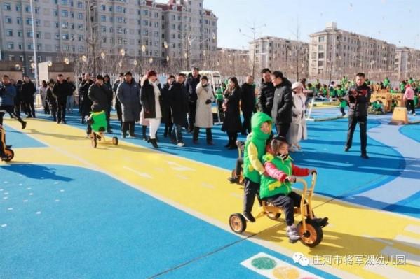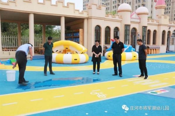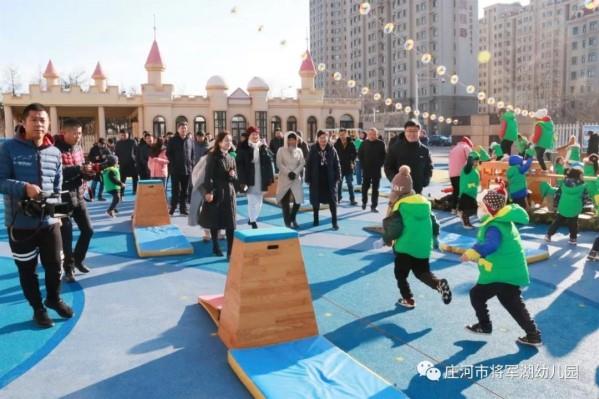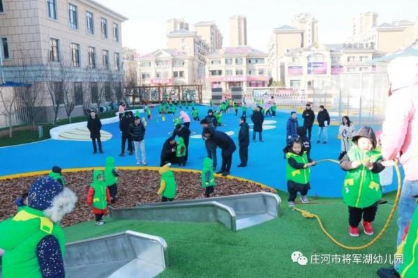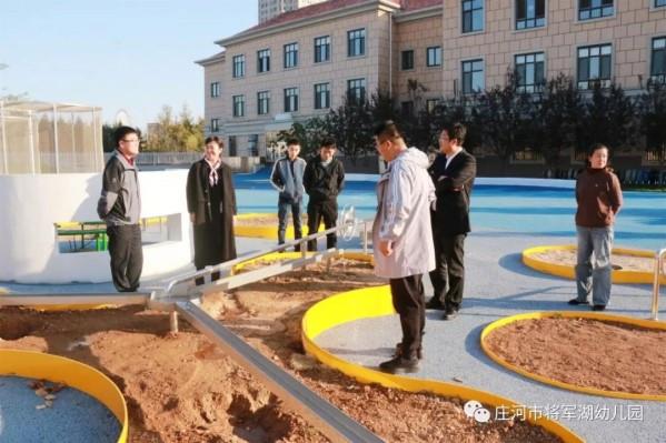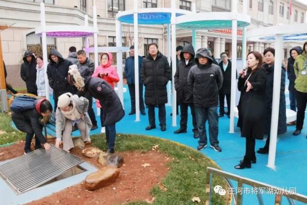 由于检查组对我园的海绵工程改造项目评价颇高,认为值得广泛学习和大力推广。12月17日上午,对我市进行海绵城市试点建设工作进行考核的另外一组专家在庄河市副市长苏长忠等领导的陪同下莅临我园。雨过初晴,阳光明媚,校园经过雨水的浸润焕然一新。孩子们正在进行户外自主运动游戏,欢快的身影、爽朗的笑声为校园带来勃勃生机,仿佛周围的环境也被赋予了鲜活的生命,与孩子们一起互动、玩耍。