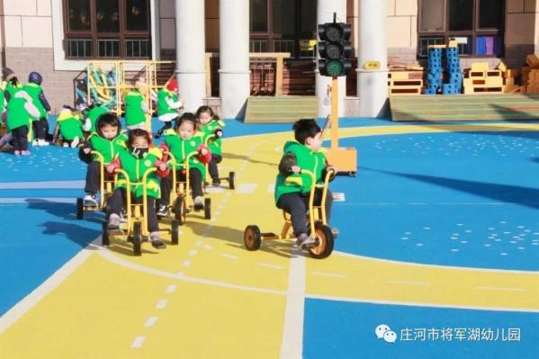 丹丹老师将我园以“雨滴之旅”为主题精心打造的18处园林小品娓娓道来,前操场的整体设计融入河流、湖泊、雨滴等元素,蕴含浓郁的水文化特色,极富艺术气息。车行区、综合区、球场等为孩子模拟了生活中的场景,不断丰富着孩子们的规则意识、审美观念和实践经验。