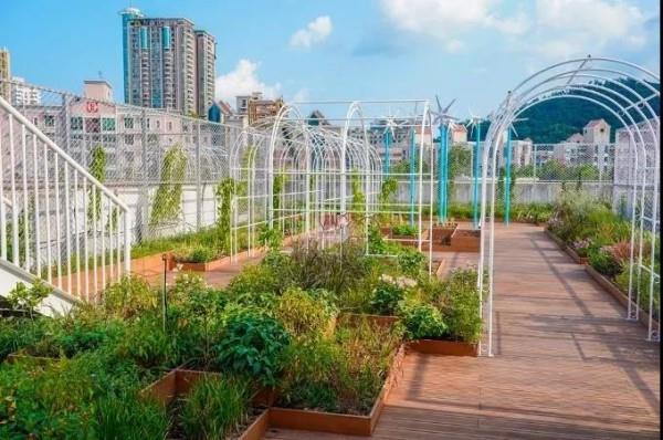 岗厦1980的绿色屋顶位于深圳福田CBD的城中村,桃花源生态保护基金会、大自然保护协会以立体轻钢结构搭载400余个种植箱,培育华南本土植物,于握手楼丛中开拓出前所未见的绿化空间。在绿色屋顶改造后,并搭配上300升容量的雨水收集桶,通过屋顶的种植与蓄水设备可以实现65%的雨水年径流总量控制率。同时,也有效提升了城中村的环境宜居性,并成为了一个为社区服务的多功能活动空间。