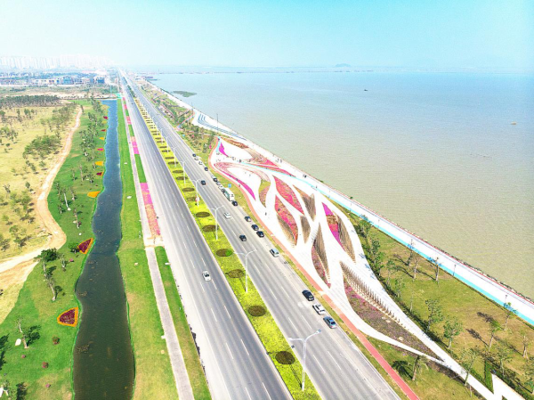 道路建设项目在方案设计阶段就已将海绵设施与滨海景观带结合,保证主干道景观美感的同时,融入新型结构断面,充分发挥植被、土壤等自然下垫面对雨水的渗透作用,通过对地形的微调使雨水顺利进入LID设施内。在确保水安全的前提下,重点考虑雨水净化等问题。横琴新区濠江路、金湾区机场东路和金湖大道东路等项目已初见成效。